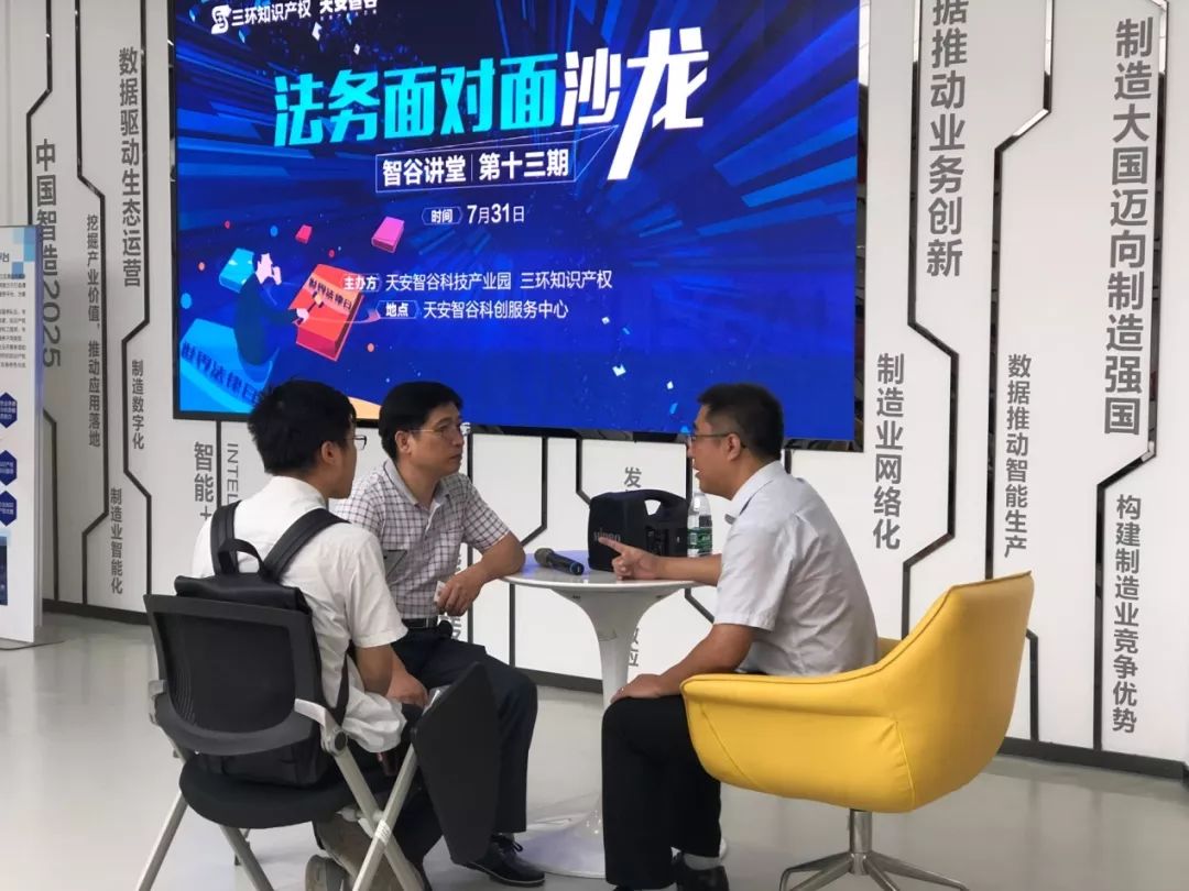 7月31日下午,廣州三環專利商標代理有限公司清遠分公司聯合天安智谷科創服務中心舉辦【百所千企——走進天安智谷科技園】法律沙龍活動。活動由北京大學法學學士、廣州三環專利商標代理有限公司隋喜鑫律師作分享交流。